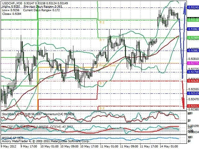 Předpokládaný pohyb pro dnešní den LONG. Případné vstupy do obchodu z hladiny 0.9265 s předpokládaným cílem 0.9335, případně až 0.9365. Proražení hladiny 0.9265 může vést k pohybu s pravděpodobným cílem 0.924 až 0.9205.