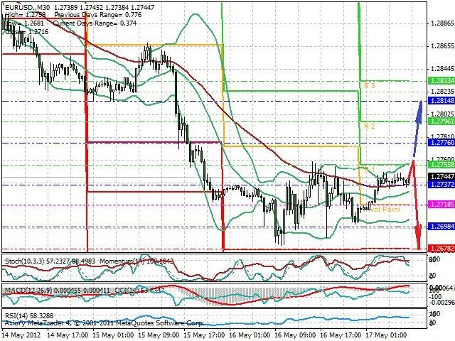 Předpokládaný pohyb pro dnešní den SHORT. Případné vstupy do obchodu z hladiny 1.276 s předpokládaným cílem 1.2675 případně až 1.2625. Proražení hladiny 1.276 může vést k pohybu s pravděpodobným cílem 1.2815 až 1.285.