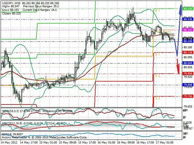 Předpokládaný pohyb pro dnešní den LONG. Případné vstupy do obchodu z hladiny 80.1 s předpokládaným cílem 80.55, případně až 80.65. Proražení hladiny 80.1 může vést k pohybu s pravděpodobným cílem 79.95 až 79.8.