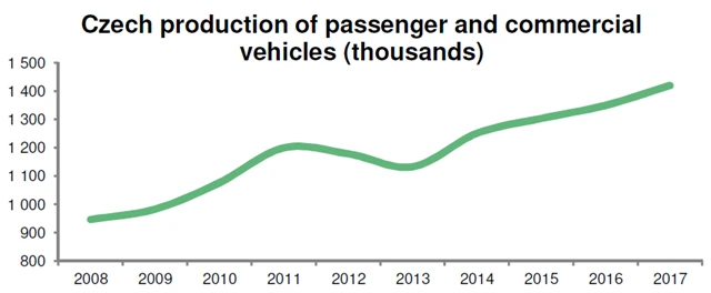 Vysoká poptávka po nových vozech v Evropské unii přispívá k rekordním výsledkům českého automobilového průmyslu i celé domácí ekonomiky. Jen v roce 2017 bylo v Česku vyrobeno 1,42 milionu automobilů.