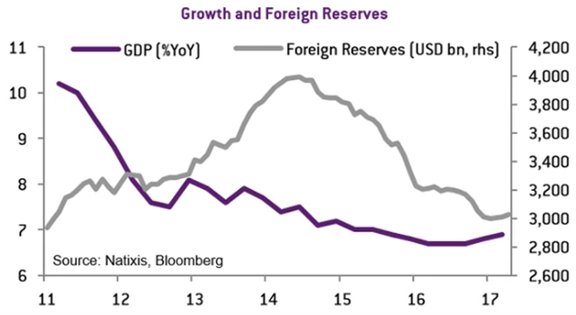 Svědčí o tom projekt Jedno pásmo, jedna cesta (OBOR), jehož cílem je zasíťovat svět dopravní a přepravní infrastrukturou "made in China". Tento středobod zahraniční politiky prezidenta Si Ťin-Pchinga se vzhledem k marginální pozici jüanu na globální scéně opírá o dolary. A těch se v důsledku obchodní války s Američany Pekingu v potřebné míře nedostává, tvrdí šéf oddělení emerging markets v Citigroup David Lubin.