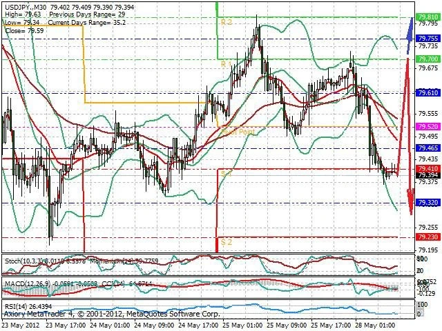 Předpokládaný pohyb pro dnešní den SHORT. Případné vstupy do obchodu z hladiny 79.7 s předpokládaným cílem 79.3, případně až 79.2. Proražení hladiny 79.7 může vést k pohybu s pravděpodobným cílem 79.8 až 80.