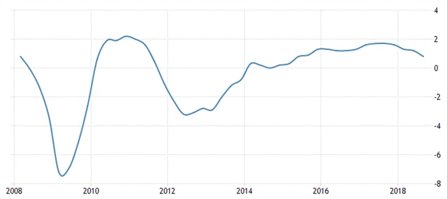 Vývoj HDP Itálie (meziročně v %), zdroj: Tradingeconomics.com
