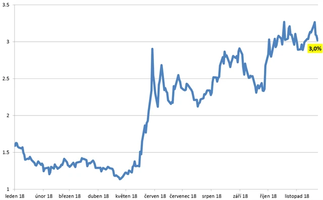 Investoři si toto riziko dobře uvědomují a po nástupu nové populistické vlády v letošním roce se začali vyšších rozpočtových deficitů výrazně obávat. To se projevilo tak, že se investoři přibližně od května začali italských státních dluhopisů masivně zbavovat. Výsledkem byl rapidní nárůst výnosů italských dluhopisů (ceny a výnosy dluhopisů se pohybují inverzně). Nejsledovanější dluhopis s 10letou splatností se do května obchodoval s výnosem okolo 2 %, od té ale prudce stoupl na aktuálních zhruba 3,4 %. Podobný nárůst výnosů proběhl u dluhopisů všech splatností.