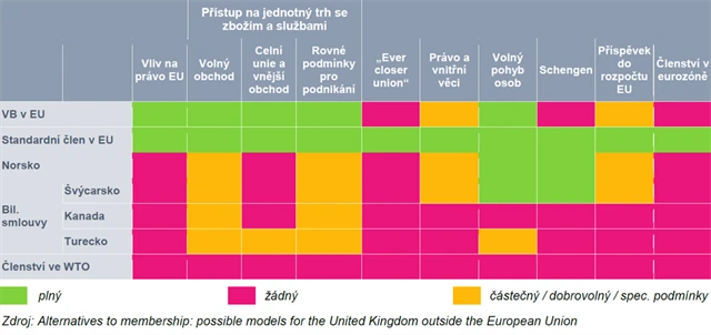 V případě nesouhlasu britského parlamentu s dohodou vyjednanou ministerskou předsedkyní Theresou Mayovou by Spojené království mělo možnost navázat s Evropskou unií vztahy na základě řady obchodních modelů.