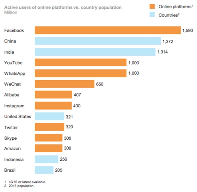 V současnosti má třetina populace Země v kapse počítač s větší kapacitou a rychlostí, než jakou disponovaly stroje pomáhající NASA přistát na Měsíci. V roce 2021 by měli mít prostřednictvím chytrého telefonu k dispozici srovnatelný potenciál již dva lidé z pěti. Ruku v ruce s tím dále poroste (nejen) hospodářská síla platforem a obecněji technologických společností, které se již dnes mohou co do počtu uživatelů směle srovnávat s nejlidnatějšími zeměmi světa.