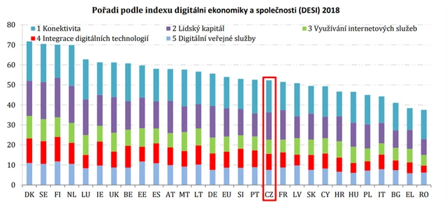 Zdroj: Index digitální ekonomiky a společnosti (DESI) 2018 (zpráva Evropské komise o České republice, 2018)