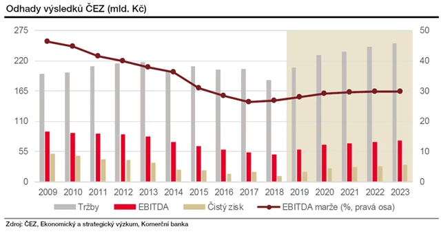 Loňský rok byl pro ČEZ posledním z období dlouhodobého propadu ziskovosti. Očekáváme, že vyšší realizační ceny elektřiny povedou k opětovnému nárůstu zisků.