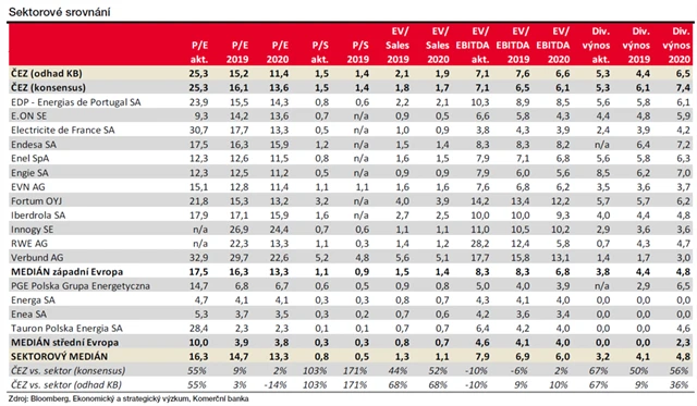 Akcie je obchodována na násobcích odhadovaného P/E na základě zisku za letošní rok na úrovni 15,2 (západoevropské síťové společnost 16,2 a celá Evropa 14,6), EV/EBITDA je 7,6 (8,3 a 6,9) a dividendový výnos 4,4 % (4,5 %, 4,1 %).