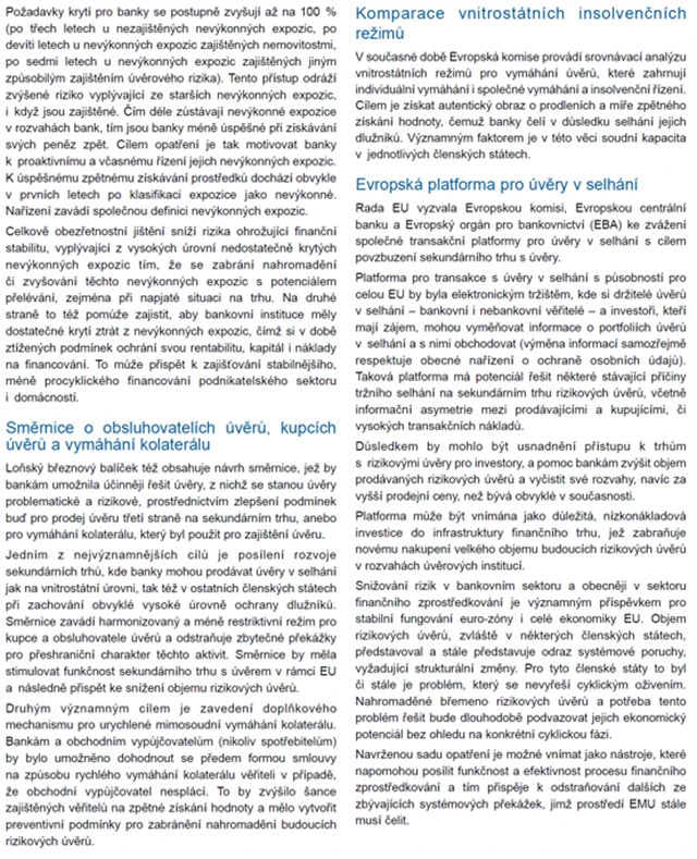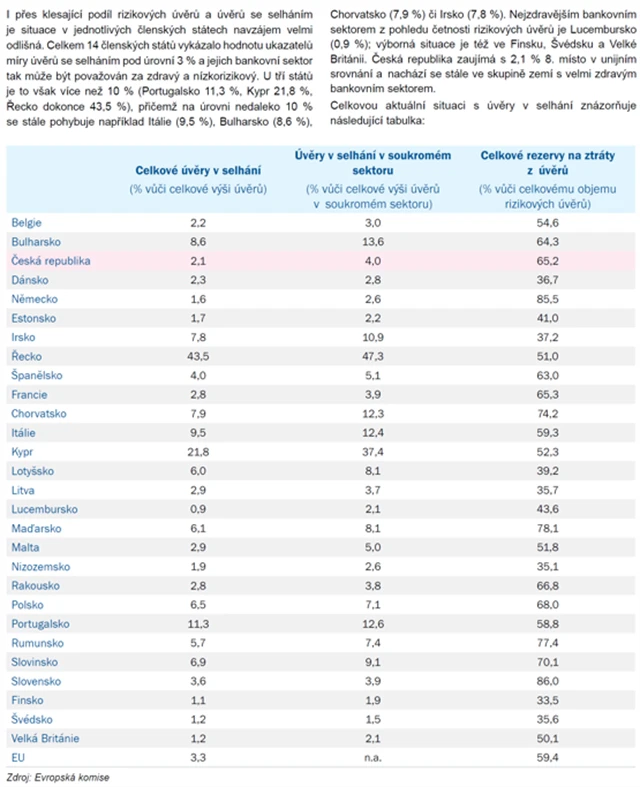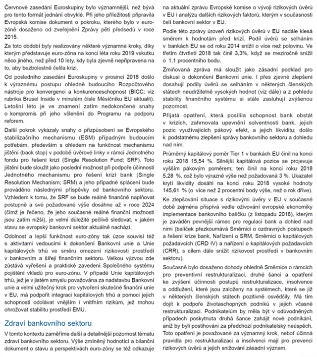Jak (ne)zdravý je evropský bankovní sektor?Jak jsou na tom evropské banky? Téma shrnuje ekonom Petr zahradník z České spořitelny. Redakce IW14. 9. 2019 | 18:00Evropské bankyBankovní unieBankyEU Office ČSEvropská unieEvropské bankyFinanční sektorPetr ZahradníkRedakce IW Další články autoraTOP 10 článků týdne: Investiční tipy, Moskva vůči Pekingu a AI pokaždé jinakOčekávané výsledky světových firem v týdnu od 10. listopadu: Walt Disney, Cisco Systems, RWE, ČEZJak vydělat na jednorožcích dříve, než se na ně vrhnou investoři na burze DoporučujemeNestihli jste naskočit do zlaté rally? Vůbec není pozdě, říká stratégZlatoRychlé peníze ve velkém opustily zlato a stříbro. Trh se připravuje na další růstZlatoAI euforie žene index S&P 500 do extrémů. Bank of America radí, kam teď "schovat" penízeDiverzifikace investic Aktualitydnes | 10:19Rumble oznámila převzetí německé AI firmy Northern Data za 767 mil. USDdnes | 10:16Colt CZ Group vydala dluhopisy za šest miliard, zájem investorů byl vysokýdnes | 10:05Silný zájem o IPO nestačil, Lenskart po slabém debutu ztrácídnes | 9:40Bessent: Trumpova "dividenda" by mohla mít podobu daňových úlevdnes | 9:28Pražská burza v úvodu posiluje: Index PX +0,48 %, Gevorkyan +1,74 %, ERSTE +1,66 %, Doosan Škoda Power +1,73 %, ČEZ +0,46 % dnes | 9:20Evropské akcie v úvodu: STOXX Europe 600 +1,13 %, FTSE 100 +0,67 %, DAX +1,61 %, CAC 40 +1,12 % dnes | 1:58Americký Senát je údajně připraven ukončit rekordně dlouhý vládní shutdowndnes | 0:00Co musíte dnes vědět (10. listopadu): Celní dividenda pro Američany9. 11. | 10:13Čínská deflace v říjnu polevila, spotřebitelské ceny znovu rostou8. 11. | 13:12Pfizer převezme Metseru, dánská Novo Nordisk ze souboje o firmu odstoupila7. 11. | 22:30Technologické tituly v USA v pátek dále srážely obavy z vysokých valuací. Indexy se na směru neshodly, za týden ale všechny výrazně klesly7. 11. | 18:00Evropské akciové indexy v pátek i za celý týden kleslyZobrazit všechny aktuality Nejčtenější tento týden1.Nestihli jste naskočit do zlaté rally? Vůbec není pozdě, říká stratég2.Rychlé peníze ve velkém opustily zlato a stříbro. Trh se připravuje na další růst3.AI euforie žene index S&P 500 do extrémů. Bank of America radí, kam teď "schovat" peníze4.Příští vláda shrábne makroekonomický jackpot5.Dvě fakta o velkých akciových propadech, která vás možná překvapí6.Bank of America varuje: Americké akcie působí zdravě, ale trh uvnitř hnije Sledujte násinvesticniweb.cz14000Investiční web19300LIVE2300Investiční web1000investicni_web500Investicniweb.cz33600