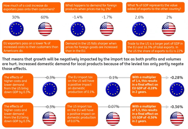 Stručně řečeno, přinejmenším v krátkodobém a střednědobém horizontu na podobnou obchodní ofenzivu z obou stran doplatí byznys i spotřebitelé na obou březích Atlantiku. A to přidusí ekonomiky USA i EU podobnou měrou.
