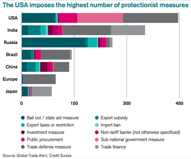 Tak jako Američané po válce vnutili většině světa free trade, ale ve chvíli, kdy jim začala japonská konkurence šlapat na paty, ideologii změnili na fair trade (reflektující mimo jiné to, že byli Japonci ochotni více pracovat), nyní Washington nedělá nic jiného, než že chrání vlastní zájmy, nikoli vzletné koncepty. A činí tak s pomocí tahů, které ze Spojených států, navzdory rétorice, (u)dělají jeden z trhů s nejvyššími obchodními bariérami.
