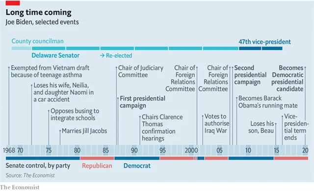 Sám sebe pasoval do role nositele "změny". Od té doby přináší změnu pořád, šestatřicet let v Senátu, osm let coby viceprezident a poslední čtyři roky jako jedno z demokratických želízek v ohni boje o Bílý dům. Je to svého druhu obdivuhodné, uvážíme-li, že podstata oné změny - progresivnější zdanění, socialističtější zdravotnictví, odchod z dlouhodobých zahraničních válečných angažmá - je plus minus stejná dnes jako na počátku.