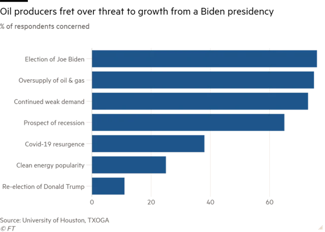 Jiné věci si povšiml deník Financial Times. Biden se pečlivě vyhýbá hovoru o fosilních palivech a jejich těžbě. Pohled na mapu jasně říká, proč to tak je. Hlasy progresivních odpůrců těžby ropy (zejména frakování z břidlic) bude potřebovat, ale právě tak nesmí přijít o hlasy lidí, kteří jsou na těžbě existenčně závislí, například v Pensylvánii.