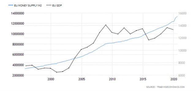 Klíčovou otázkou pro budoucnost je, jak růst peněžní zásoby v Evropě ovlivní ekonomiku. Mnozí analytici i zástupci veřejnosti se domnívají, že to musí vést k vysoké inflaci. Stále více ekonomů však tvrdí, že propojení peněžní zásoby a inflace není v současnosti nijak zvláště silné.