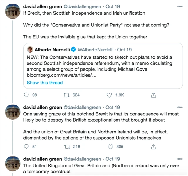 Nastartovaný velký geopolitický rebalanc poháněný posilováním systémového významu Číny a dalších rozvíjejících se gigantů a také chaotický nový (ab)normál přikrmený koronavirovou krizí tuto realitu, jež byla i přirozenou součástí naší historie, vrátí pomyslně domů. V kontextu brexitu vedeného impotentní politickou garniturou Borise Johnsona je právě proto relevantní sledovat diskuze o (ne)Velké Británii, hezky shrnuté Davidem Greenem (mimo jiné Financial Times) a Albertem Nardellim (Bloomberg).