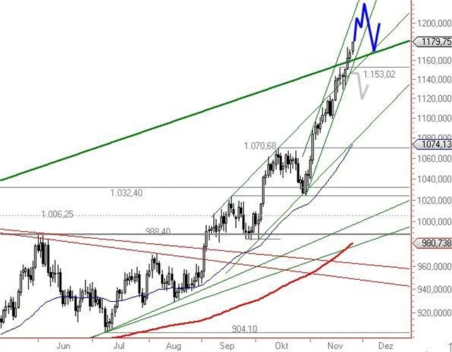 Technicky před sebou nemá už žádné rezistence a i když technická analýza ukzauje, že cena je překoupená, další vývoj čekáme stále směrem vzhůru.
