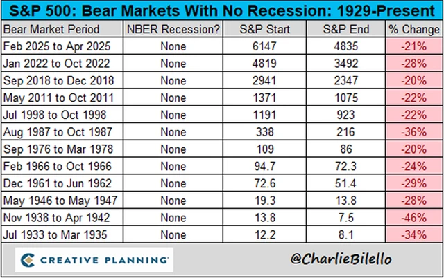 Že medvědí trend na akciovém trhu musí být provázen recesí.