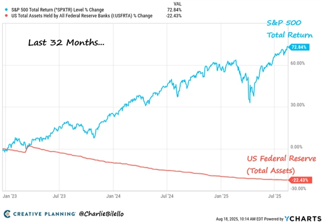Že pokles bilance Fedu je důvod k poklesu cen akcií v USA.