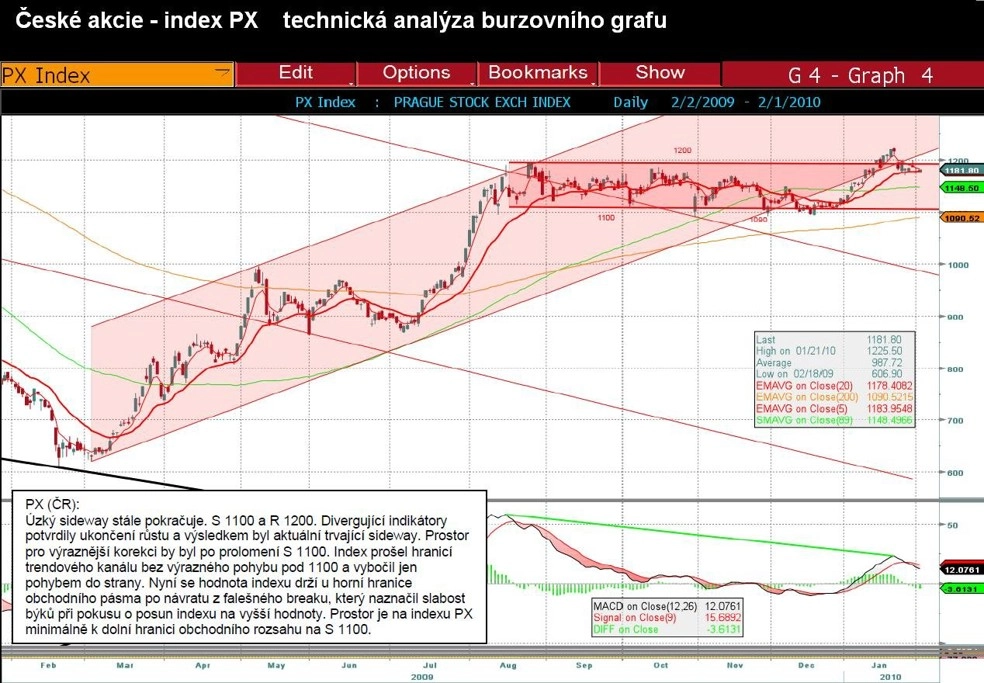 Co říká technický analytik Tomáš Rojík (Fio, burzovní společnost) na aktuální graf vývoje indexu českých akcií PX a kde jsou podle něj důležité hodnoty, které by měli investoři sledovat?