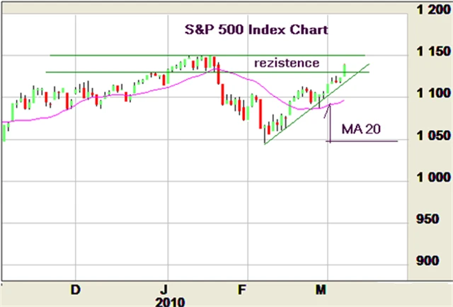Všechny hlavní indexy v minulém obchodním týdnu skončily v zisku a přiblížily se ke svým maximům z ledna. Indexy rostly téměř každý den, ale objemy obchodů byly slabší. Z ekonomických zpráv převažovaly pozitivní. Páteční růst podpořily výsledky z trhu práce, kdy výsledky byly lepší než očekávané. (7. 3. 2010)