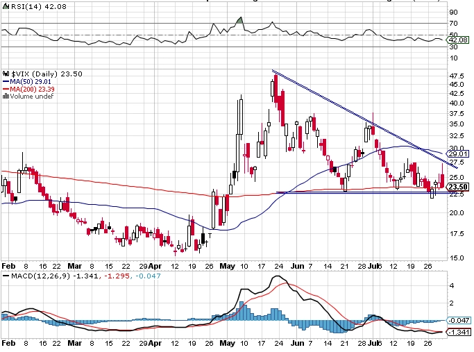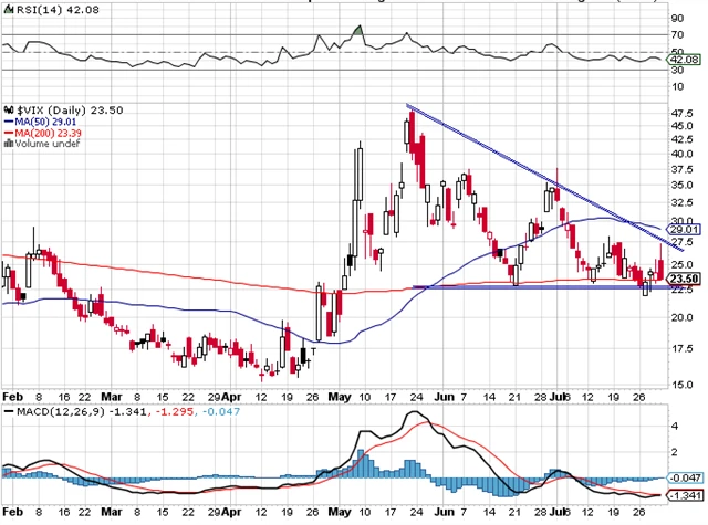 Index volatility VIX drží sestupnou trendovou čáru, což je býčí signál pro akcie.