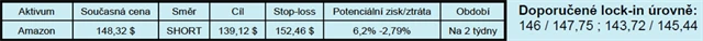 Odhadujeme, že Amazon sice brzy otestuje dubnové maximum (R1 na 151), poté však pravděpodobně dojde k vybírání zisků a snížení ceny akcie.
