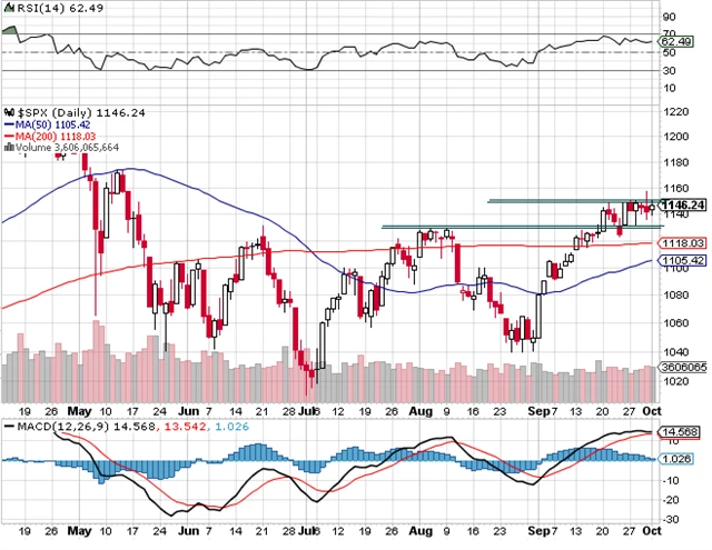 Index S&P 500 ve čtvrtek vytvořil nové lokální maximum, kdy se krátce po otevření dostal na cenu 1 157 bodů, aby se následně ihned vracel zpět pod důležitou hladinu 1 150. Podívejme se na střednědobé indikátory.