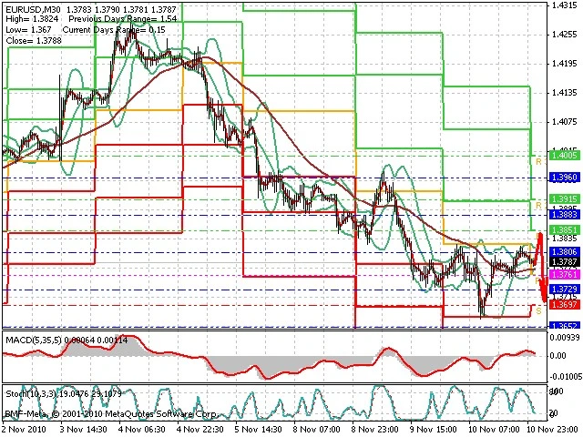 Předpokládaný pohyb pro dnešní den SHORT. Případné vstupy do obchodu z hladiny 1.384 s předpokládaným cílem 1.3695, případně až 1.364. Při proražení hladiny 1.385 se otevře cesta k 1.39 až 1.3975.