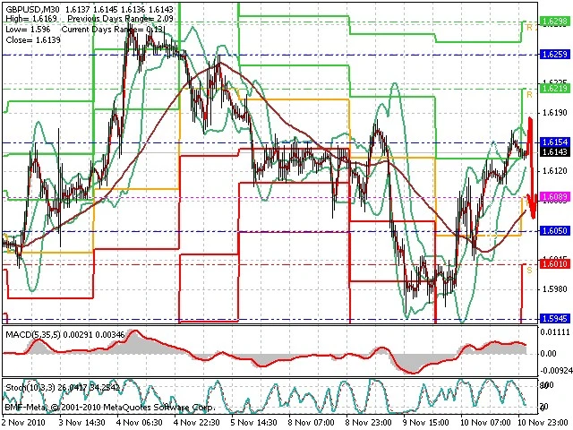 Očekáváme vývoj SHORT, případné vstupy do obchodu z hladiny 1.618 s předpokládaným cílem 1.607 až 1.6. Proražení hladiny 1.618 může vést k pohybu s pravděpodobným cílem 1.621 až 1.626.