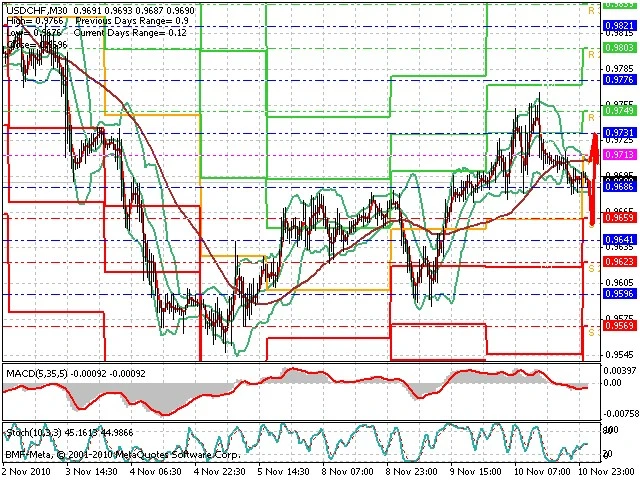 Předpokládaný pohyb pro dnešní den LONG z hladiny 0.965 s předpokládaným cílem 0.975, případně až 0.98. Alternativní proražení hladiny 0.965 může vést k pohybu s pravděpodobným cílem 0.9625 až 0.959.