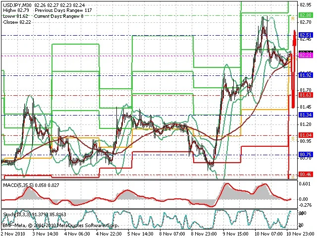 Předpokládaný pohyb pro dnešní den LONG. Případné vstupy do obchodu z hladiny 81.45 s předpokládaným cílem 82.0, případně až 82.35. Při proražení hladiny 81.4 se otevře cesta k 81.25 až 81.0.