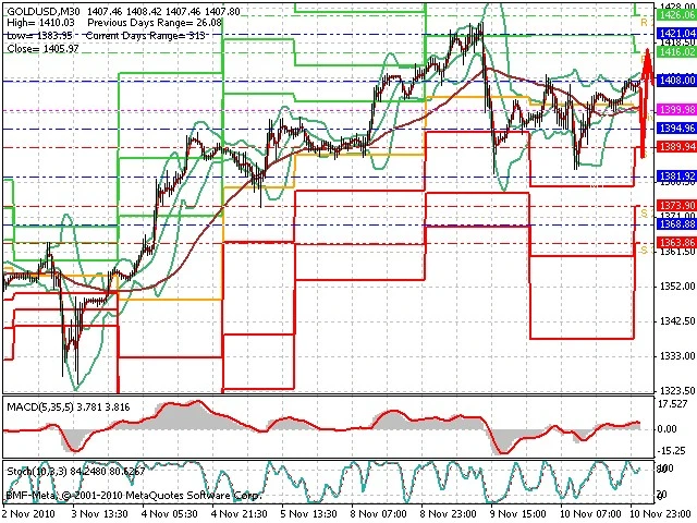 Předpokládaný pohyb pro dnešní den LONG. Případné vstupy do obchodu z hladiny 1 387 s předpokládaným cílem 1 412, případně až 1 424. Při proražení hladiny 1 387 se otevře cesta k 1 373 až 1 350.