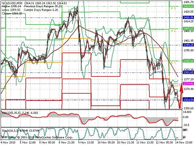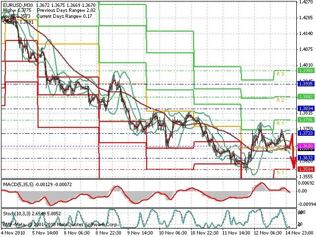 Předpokládaný pohyb pro dnešní den SHORT. Případné vstupy do obchodu z hladiny 1.3728 s předpokládaným cílem 1.3584, případně až 1.3480. Při proražení hladiny 1.373 se otevře cesta k 1.375 až 1.3825.