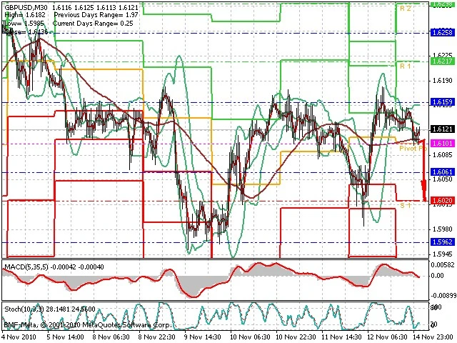 Očekáváme vývoj SHORT, případné vstupy do obchodu z hladiny 1.61 s předpokládaným cílem 1.602 až 1.5955. Proražení hladiny 1.61 může vést k pohybu s pravděpodobným cílem 1.6175 až 1.624.