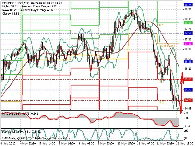Očekáváme vývoj LONG. Případné vstupy do obchodu z hladiny 83.65 s předpokládaným cílem 88.55 až 89.25. Proražení hladiny 83.65 může vést k pohybu s pravděpodobným cílem 82.6 až 81.8.