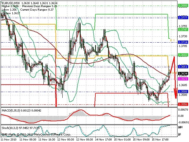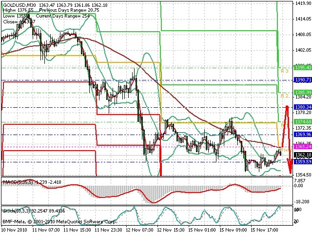 Předpokládaný pohyb pro dnešní den SHORT. Případné vstupy do obchodu z hladiny 1.3728 s předpokládaným cílem 1.3584, případně až 1.3480. Při proražení hladiny 1.373 se otevře cesta k 1.375 až 1.3825.