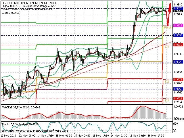 Předpokládaný pohyb pro dnešní den SHORT z hladiny 0.993 s předpokládaným cílem 0.983, případně až 0.98. Alternativní proražení hladiny 0.993 může vést k pohybu s pravděpodobným cílem 0.998 až 1.0015.
