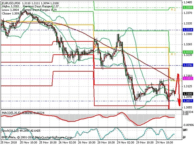 Předpokládaný pohyb pro dnešní den SHORT. Případné vstupy do obchodu z hladiny 1.3175 s předpokládaným cílem 1.304, případně až 1.3005. Proražení hladiny 1.3185 může vést k pohybu s pravděpodobným cílem 1.325 až 1.33.