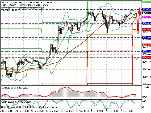 Předpokládaný pohyb pro dnešní den LONG. Případné vstupy do obchodu z hladiny 1 380 s předpokládaným cílem 1 400, případně až 1 410. Proražení hladiny 1 380 může vést k pohybu s pravděpodobným cílem 1 365 až 1 354.