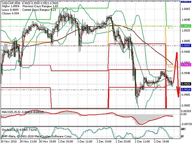 Předpokládaný pohyb pro dnešní den SHORT. Případné vstupy do obchodu z hladiny 0.9985 s předpokládaným cílem 0.991, případně až 0.9875. Proražení hladiny 0.9985 může vést k pohybu s pravděpodobným cílem 1.0025 až 1.005.