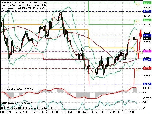 Předpokládaný pohyb pro dnešní den LONG. Případné vstupy do obchodu z hladiny 1.325 s předpokládaným cílem 1.336, případně až 1.34. Proražení hladiny 1.324 může vést k pohybu s pravděpodobným cílem 1.3185 až 1.315.