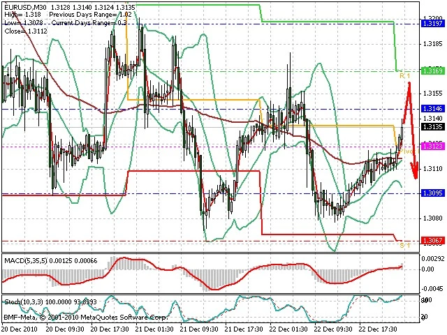 Předpokládaný pohyb pro dnešní den SHORT. Případné vstupy do obchodu z hladiny 1.3165 s předpokládaným cílem 1.307, případně až 1.3035. Proražení hladiny 1.3175 může vést k pohybu s pravděpodobným cílem 1.3225 až 1.326.