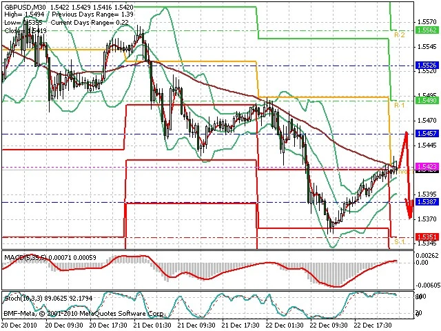 Předpokládaný pohyb pro dnešní den SHORT. Případné vstupy do obchodu z hladiny 1.546 s předpokládaným cílem 1.539, případně až 1.5335. Proražení hladiny 1.547 může vést k pohybu s pravděpodobným cílem 1.55 až 1.5545.