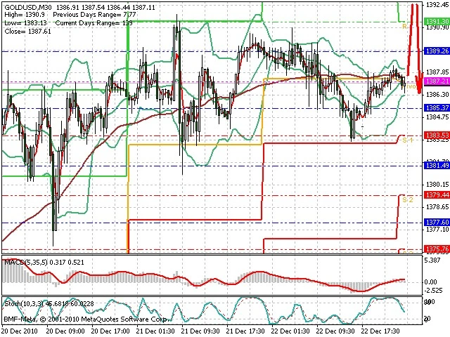 Předpokládaný pohyb pro dnešní den SHORT. Případné vstupy do obchodu z hladiny 1 393 s předpokládaným cílem 1 380, případně až 1 375. Proražení hladiny 1 393 může vést k pohybu s pravděpodobným cílem 1 398 až 1 408.