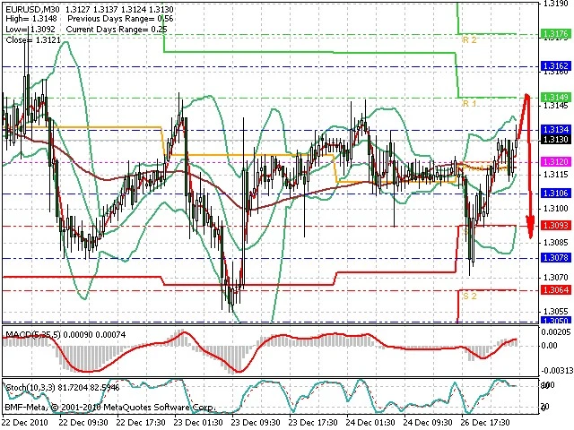 Předpokládaný pohyb pro dnešní den SHORT. Případné vstupy do obchodu z hladiny 1.315 s předpokládaným cílem 1.3075, případně až 1.3055. Proražení hladiny 1.315 může vést k pohybu s pravděpodobným cílem 1.3185 až 1.3225.