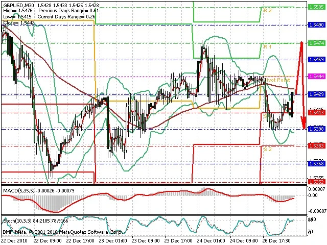 Předpokládaný pohyb pro dnešní den SHORT. Případné vstupy do obchodu z hladiny 1.5475 s předpokládaným cílem 1.5375, případně až 1.5355. Proražení hladiny 1.5475 může vést k pohybu s pravděpodobným cílem 1.5535 až 1.558.
