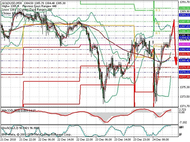 Předpokládaný pohyb pro dnešní den SHORT. Případné vstupy do obchodu z hladiny 1 388 s předpokládaným cílem 1 372.5, případně až 1 363. Proražení hladiny 1 388 může vést k pohybu s pravděpodobným cílem 1 392 až 1 398.