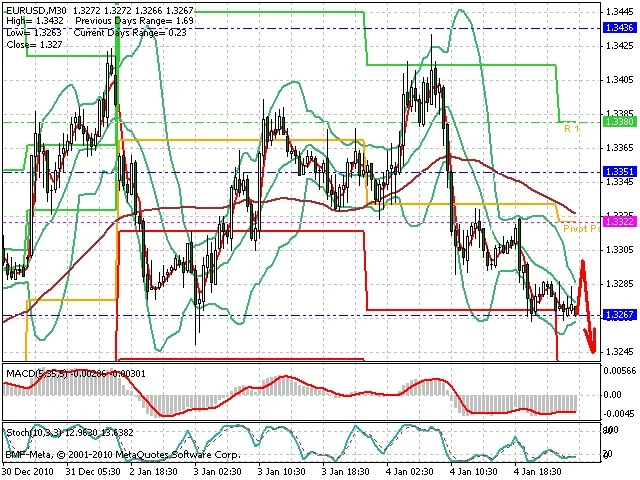 Předpokládaný pohyb pro dnešní den SHORT. Případné vstupy do obchodu z hladiny 1.332 s předpokládaným cílem 1.325, případně až 1.32. Proražení hladiny 1.333 může vést k pohybu s pravděpodobným cílem 1.3385 až 1.3425.