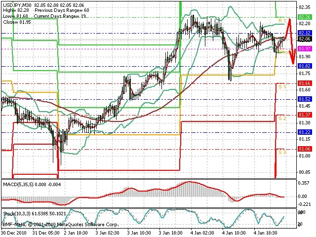 Předpokládaný pohyb pro dnešní den SHORT. Případné vstupy do obchodu z hladiny 82.25 s předpokládaným cílem 81.7, případně až 81.5. Proražení hladiny 82.3 může vést k pohybu s pravděpodobným cílem 82.5 až 82.85.